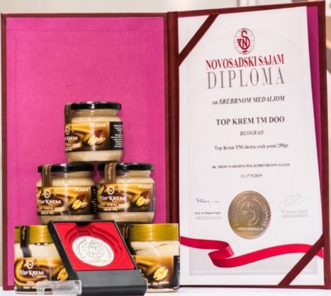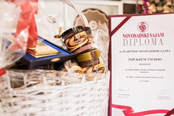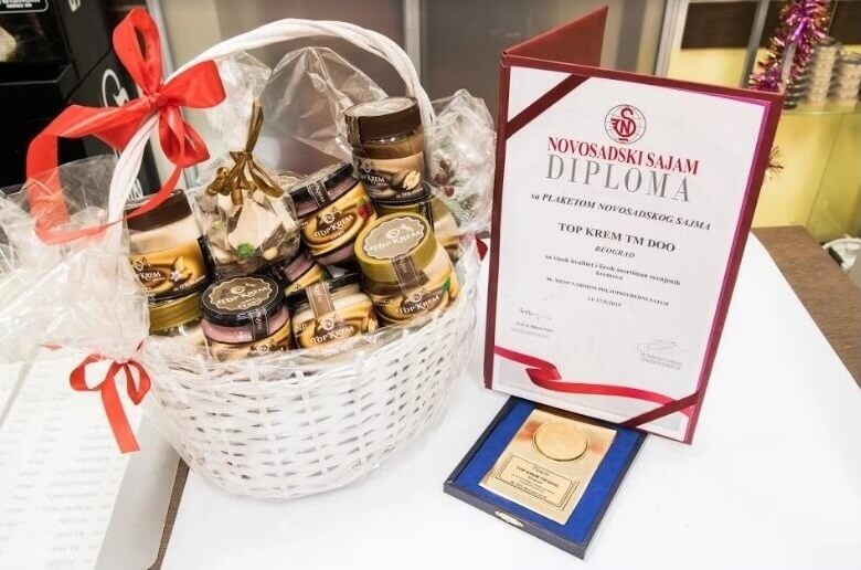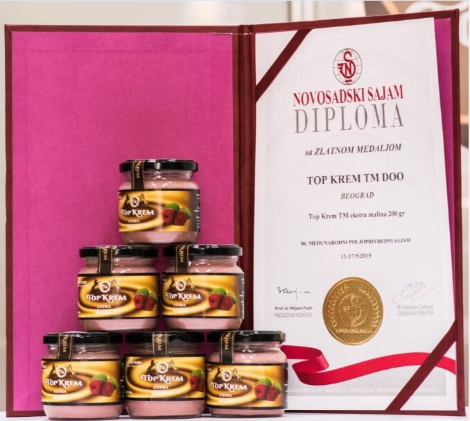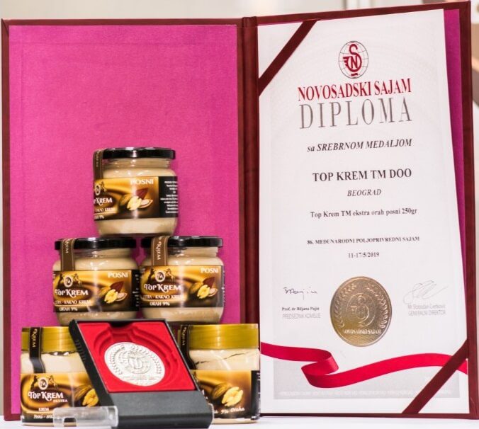 Na Novosadskom poljoprivrednom sajmu 2019. dobili smo 2 zlatne medalje (posni krem od lešnika i krem od maline), 1 srebrnu medalju (posni krem od oraha) i plaketu za visoki kvalitet i asortiman proizvoda.