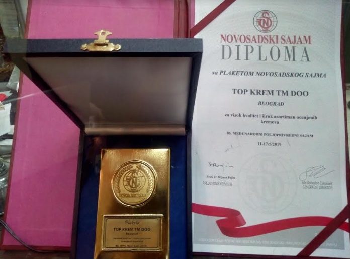 Na Novosadskom poljoprivrednom sajmu 2021. TOP KREM TM je po drugi put osvojio tri nagrade: