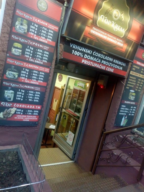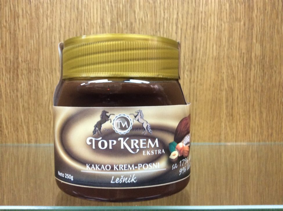 U centru Beograda, svakodnevna domaća proizvodnja i prodaja kakao kremova i čokolada u najrazličitijim varijacijama. Prvi put kod nas, uspešan spoj industrijske proizvodnje i ručne dorade čokoladnih poslastica, kombinacijom ideja francuskih gastronomskih kreacija i srpske inventivnosti, s dobrim izborom prirodnih sirovina TOP KREM TM proizvodi čokoladne kremove i čokolade suptilnih ukusa.